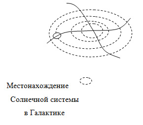 Обозначенное на рисунке движение также точно соотносится с движением планет нашей Солнечной системы в масштабах Галактики.