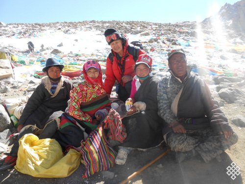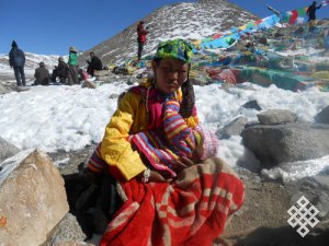 Смотрю, красиво одетая молодая женщина на камнях кормит грудью малыша. Сколько же лет малышу? На мой вопрос на английском, она отвечает, что мальчику всего лишь два месяца! Я чуть не поперхнулся. Звать его Мучу Амо. Так это же не только мировой рекорд, это рекорд Гиннесса! В прошлом году появилась информация, что 9-летний мальчик с отцом поднялся на вершину Эльбруса (5642 м), и это посчитали рекордом России. Рекорд мальчика-тибетца нам, не только россиянам, но и всем другим жителям планеты никогда не покрыть. Надо же! Без боязни вынести на спине своего двухмесячного малыша на такой разреженный воздух. Я вытащил из кармана юани и с их любезного разрешения снял их на фотовидеокамеру. Вот тибетцы, так тибетцы!