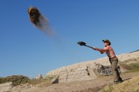 Грабительским фактором назовем действия человека, направленные на добычу материальных ценностей, содержащихся в памятниках. Действия грабителей – современников курганов или представителей племен, пришедших на эти земли позднее (включая бугровщиков XVII-XIX вв.), характеризуются узкой направленностью – они пробивали вертикальный ход (т.н. колодец или шурф) и извлекали наиболее ценные на их взгляд вещи. Так, в ограбленых курганах остаются только кости погребенного, фрагменты керамики (целые сосуды ценились и извлекались из могилы), отдельные железные и бронзовые изделия, не имеющие художественной ценности или сильно поврежденные, а также предметы, случайно или намеренно оставленные в кургане самими грабителями – испорченные инструменты, личные вещи, окурки и т.п.