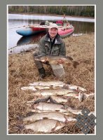 рыба уже побелела. Видимо сеть давно поставили и почему-то бросили. Висеть ей на рыбьем пути и нести погибель молодому рыбьему поколению, ячея-то — «двадцатка», мелкая.