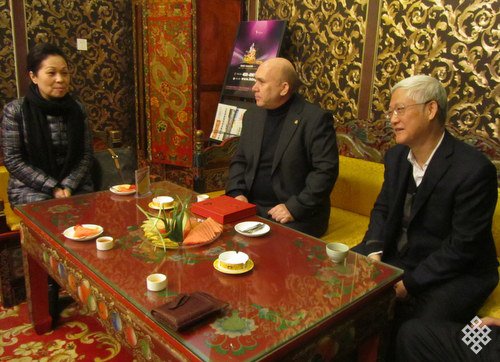 Прием организовал глава Тибетского культурного центра Силан Даньцзэнцюпэй. Гостей встретил национальный тибетский ансамбль. Гостям повязали хадак, вместе угостили духов. Затем г-н Даньцзэнцюпэй показал образцы чая, изготавливаемого для тибетцев, рассказал историю чайной торговли с Тибетом, познакомил с основными направлениями деятельности Тибетского культурного центра в Ухане.