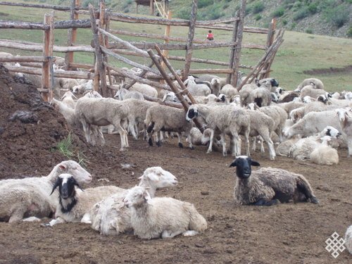 Местечко под зимник выбрано на редкость удачно – в седловине пологих гор, которые прикрывают стоянку со всех сторон от ветра. Впереди, насколько хватает глаз – широкая ковыльная степь, на которой пасутся отары овец. Лошади и крупный рогатый скот находят себе корм в ложбинках тех самых гор, прикрывающих от ветра белую монгольскую юрту. Кошара – из свежего кругляка, рядом – просторная территория для выгула скота и штабеля уже просохшего кизяка.