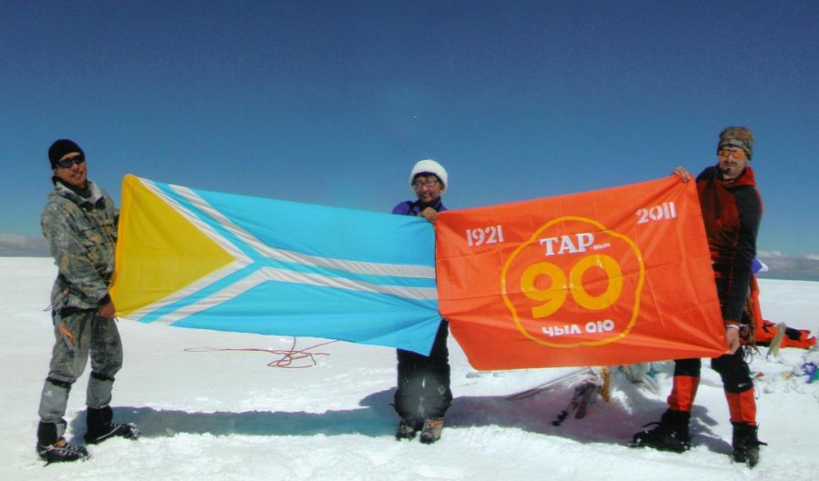 Руководитель команды «7 вершин мира – Тува» Маадыр-оол Ховалыг был во главе связки альпинистов, идущих на вершину. В 14 часов команда, состоящая из руководителя, известной альпинистки Марианны Сурунчап, сотрудника биосферного заповедника Денис Орустук и альпиниста из Канады Джеймс Дэвида взошли на самую высокую точку Тувы. Они водрузили на вершине государственные флаги Республики Тыва, России, Русского географического общества и транспарант «90 лет ТНР» на тувинском языке.