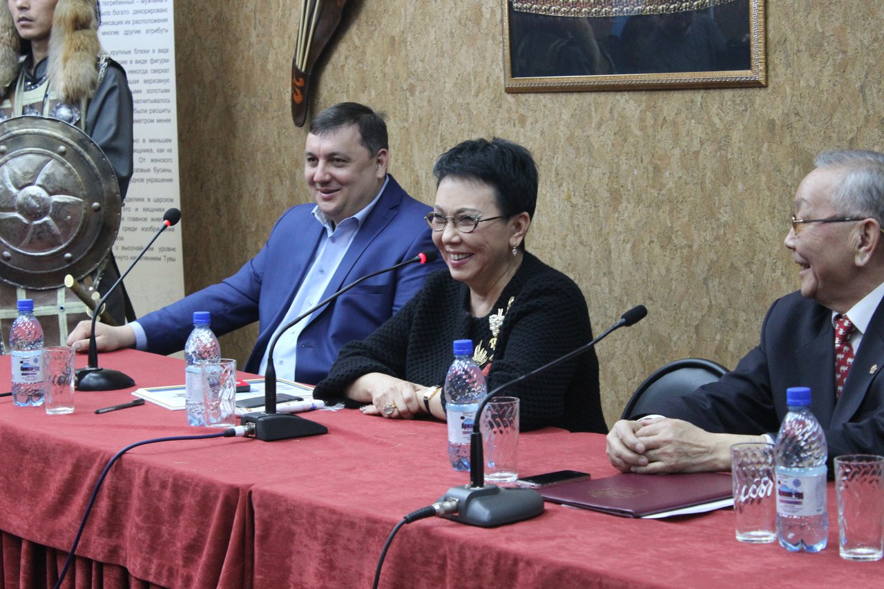 «Я рада приветствовать вас, прежде всего, не как депутат Государственный Думы, а как один из авторов этой идеи создания такого альбома. Идея зародилась сразу после того как мы увидели коллекцию золота скифов, и, поняли, что необходим такой альбом. Альбом, который бы являлся брендом Тувы. Меня поразил возраст этих сокровищ – 3 тысячи лет. Что было в Европе 3 тысячи лет назад, на других континентах? Таких крупных городов, как Лондон или Париж тогда не было, а здесь на территории Тувы уже существовала культура, высокое искусство. Перед нами высокохудожественные изделия, требующие мастерства, богатой фантазии, а самое главное богатого внутреннего мира. И нам бы хотелось поближе и поглубже заглянуть, и узнать кто такие скифы. Они бродили по всему земному шару и куда-то исчезли, как звездная пыль, оставив после себя сокровища. Самое интересное то, что многие исследования золота скифов не снимают тех вопросов, которые они ставили перед собой. Чем глубже мы проникаем в историю, тем больше возникает вопросов.