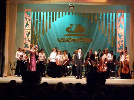 Как и накануне, действо на сцене предварял мини-концерт артистов театра в фойе, на фоне фотокартин и предметов искусства выставки Национального музея им. Алдан Маадыр.