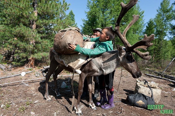 Перевальные тропы, столетиями набивающие свой штрих-пунктир копытами вьючных оленей и лошадей, постепенно растворились в мякине верховых болот и обвалах курумника. Остались только приметы в виде жердей, сложенных конусом среди ягельной пустоши. А еще – множество историй в памяти людей по обе стороны Удинского хребта. Из одного такого воспоминания, когда непролазные горные ущелья не служили препятствием, чтобы повидать родственников, обменяться оленями или просто по-соседски заглянуть в Тофаларию, и родилась в 2011 году идея нашей экспедиции. Это история Светланы Дёмкиной, встречающейся теперь с соседями-тофаларами лишь в Москве – на ежегодных ярмарках северных народов. Светлана Дёмкина – руководитель семейно-родовой общины «Хамсара-Алдын-Иви», президент ассоциации коренных малочисленных народов севера тувинцев-тоджинцев «Тос Чадыр» – «Берестяной чум», член Общественной палаты Республики Тува от Тоджинского района. Но звания и титулы – второстепенны. Прежде всего она – дочь оленевода.